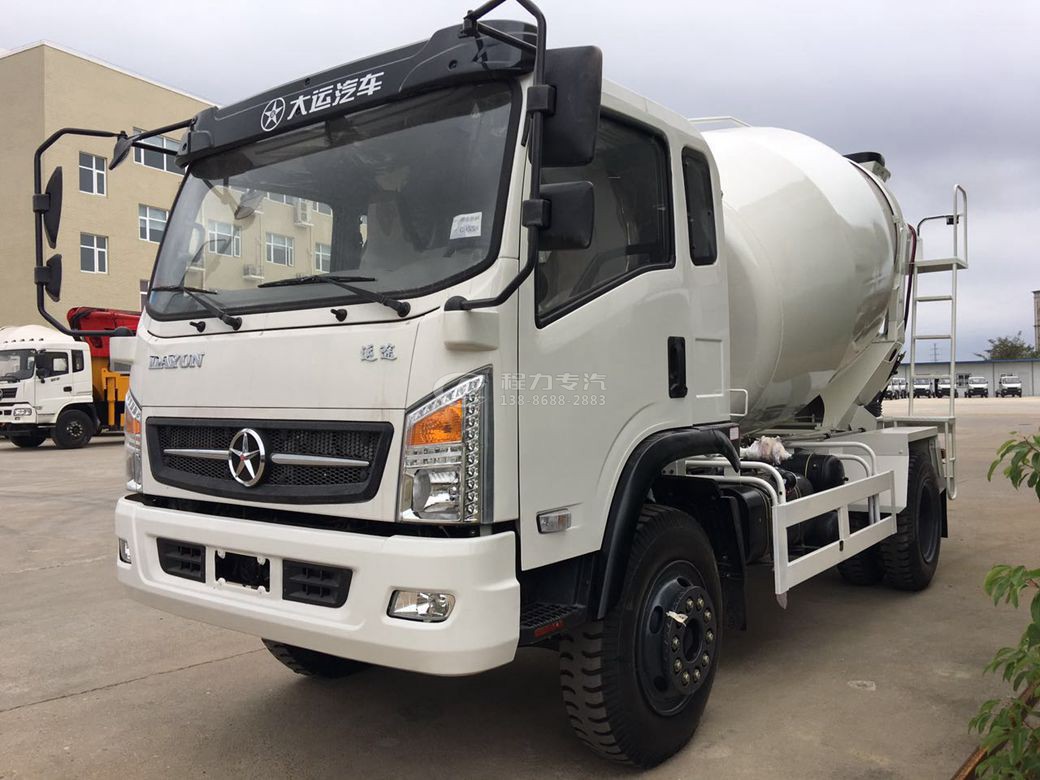 大运运途5方搅拌车,玉柴140马力,法士特小八档,可广泛适用于乡、村、镇公路,矿山,隧道,水利工程,大型工程的尾期、短期、小型工程、微小型搅拌站,地铁、国防等工程建设。 专业针对限高、限宽、限长道路,具有身车窄、轴距短、转弯半径小,灵活性强,效率高等个性化设计特点。