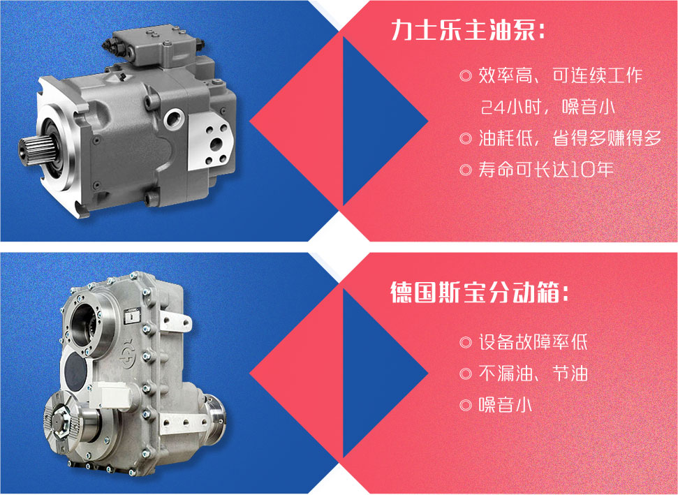 泵送吸料强、压力大、平稳、不易堵管;泵送电控换向,排故简单;易损件输送管的寿命更可达到2万方以上;砼活塞寿命1-1.5万方;泵送系统关键部件采用国际上知名品牌的力士乐、川崎及中船重工等优质配件供应商的配件,确保生产制作的小型臂架泵车质量可靠、安全、稳定、便捷。
