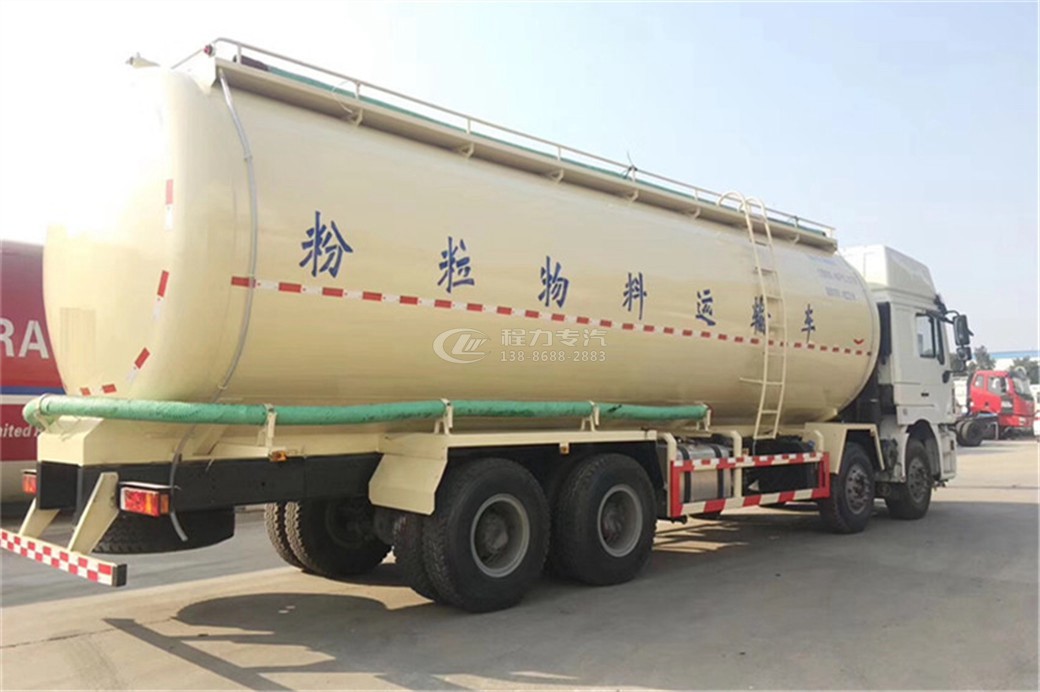 陕汽德龙40方粉粒物料运输车,潍柴375马力,陕齿12档,又称粉罐车、散装水泥运输车,其主要用途是装运易撒落、受潮、污染、变质及装运时粉尘飞扬,费工时的粉状物料。适用于粉煤灰、水泥、石灰粉、矿石粉等颗粒直径不大于0 1MM的粉粒干燥物料的运输和气压卸料。我公司生产的粉粒物料运输车产品质量上乘,是电厂、水泥厂、个人投资运输的一线品牌。